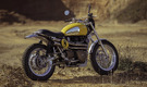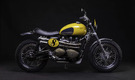 Based on the 2016 Triumph Scrambler, here is the future icon of the FCR Original house. This Scrambler preparation is the new version of the Legend range with major evolutions and a more advanced finish. Amongst these evolutions are the new yellow colour, 18 inch wheels, a new exhaust system and rear lights with integrated indicators.